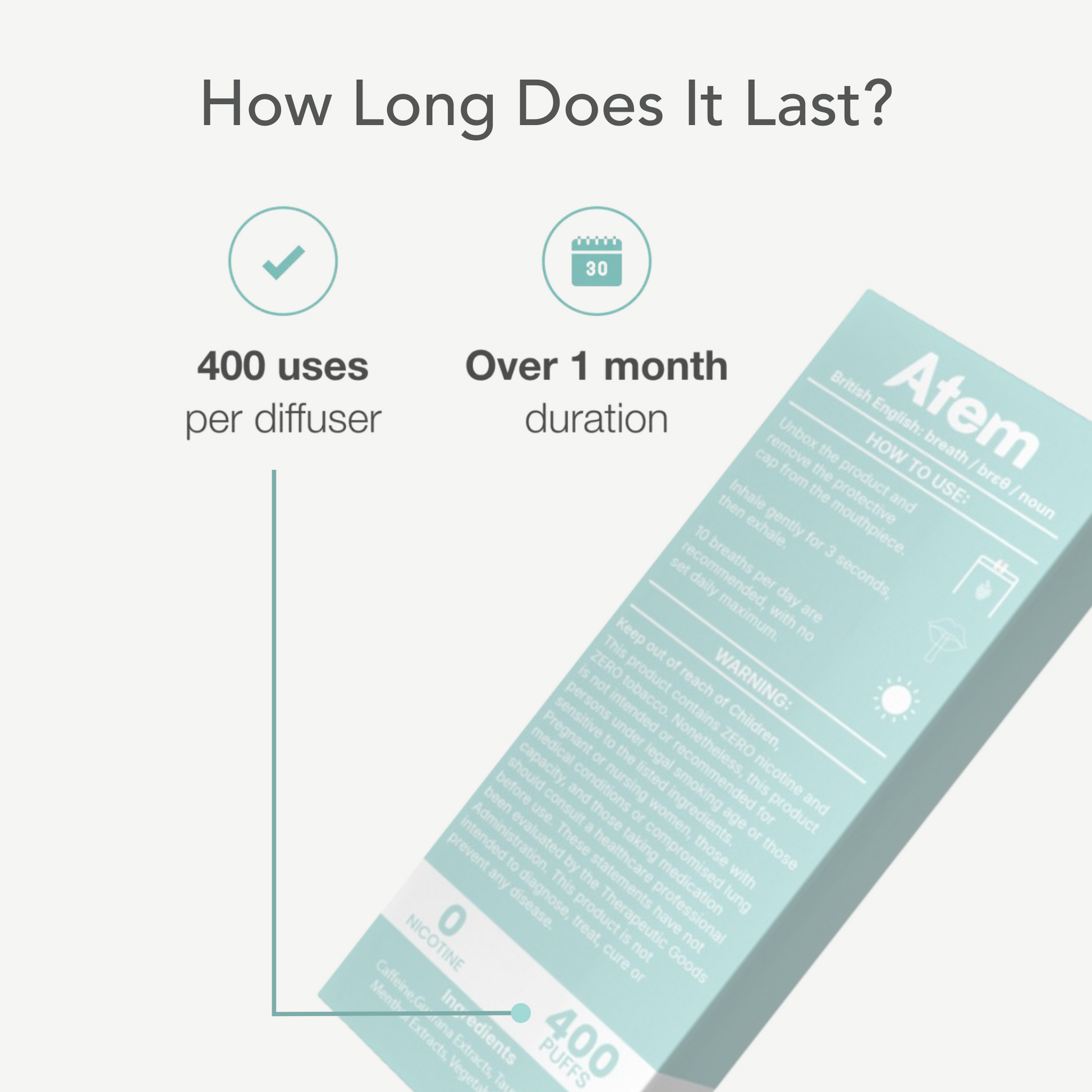 Each diffuser provides approximately 400 puffs, lasting over a month with regular use.